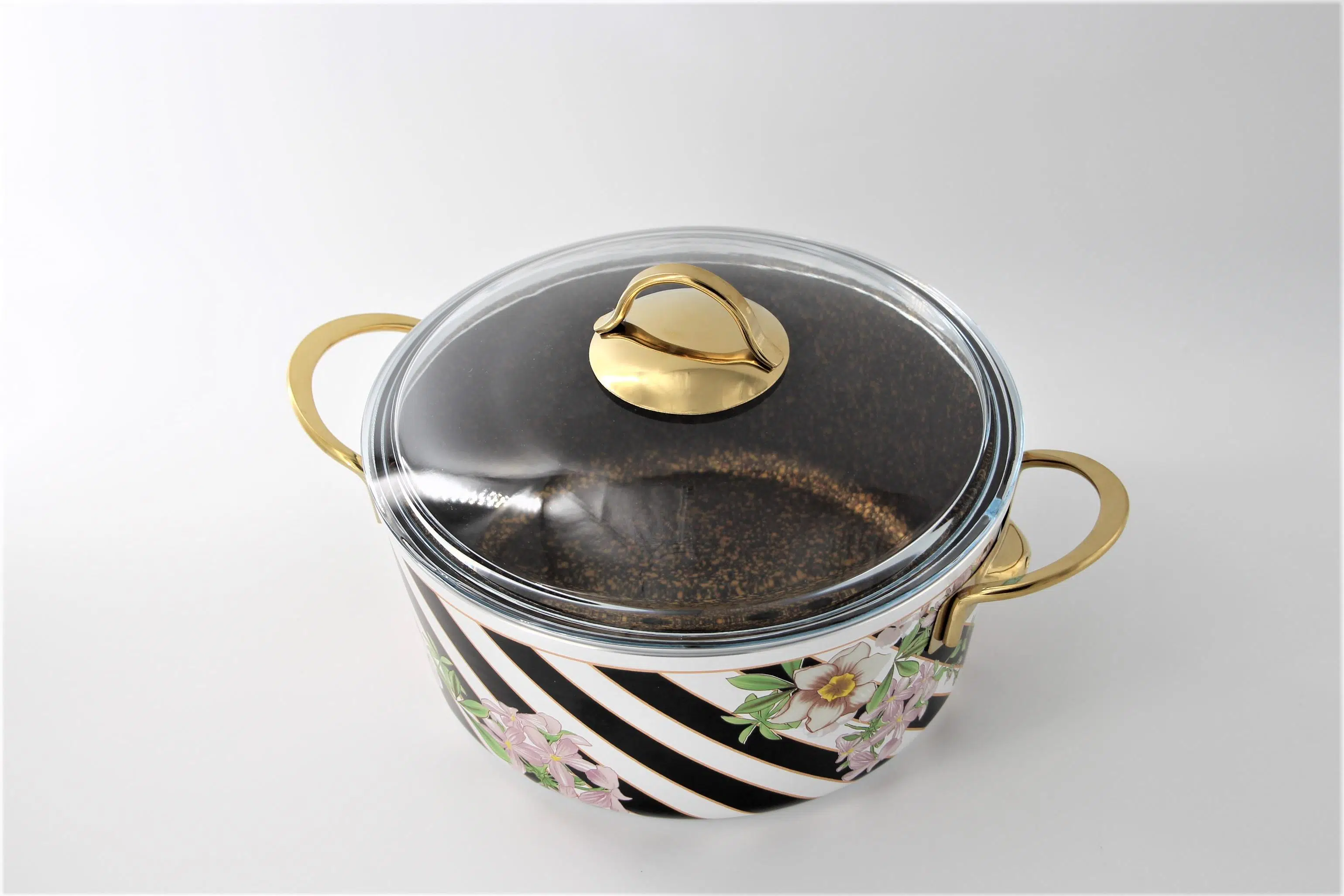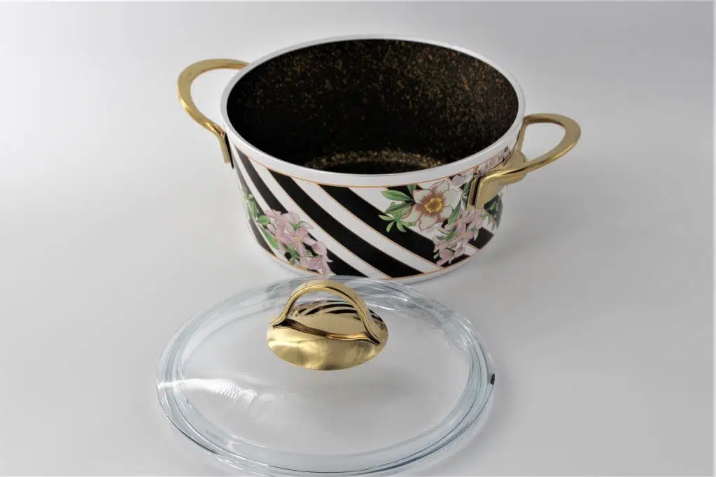 4 mm Alüminyum İçi Diamond Granit Dışı Emaye Kaplı Ç:24 cm Cam Kapaklı Yapışmaz Tencere 4500 cc