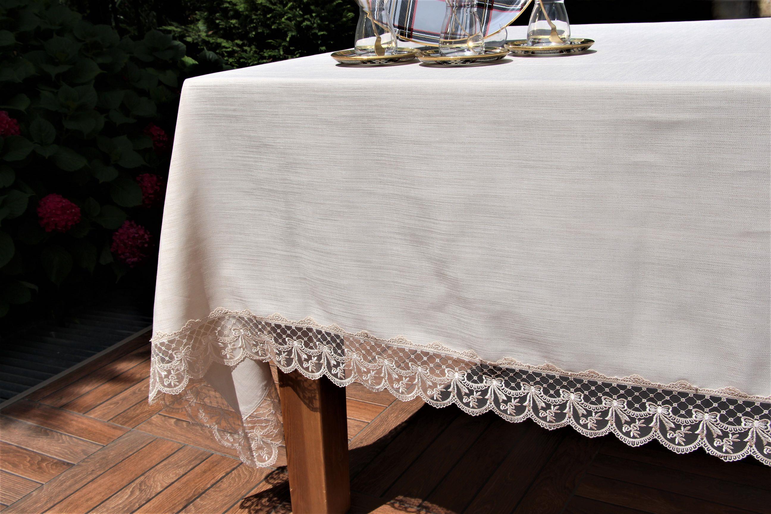 MASA ÖRTÜLERİCappuccino Renk Güpürlü Dikdörtgen Masa Örtüsü