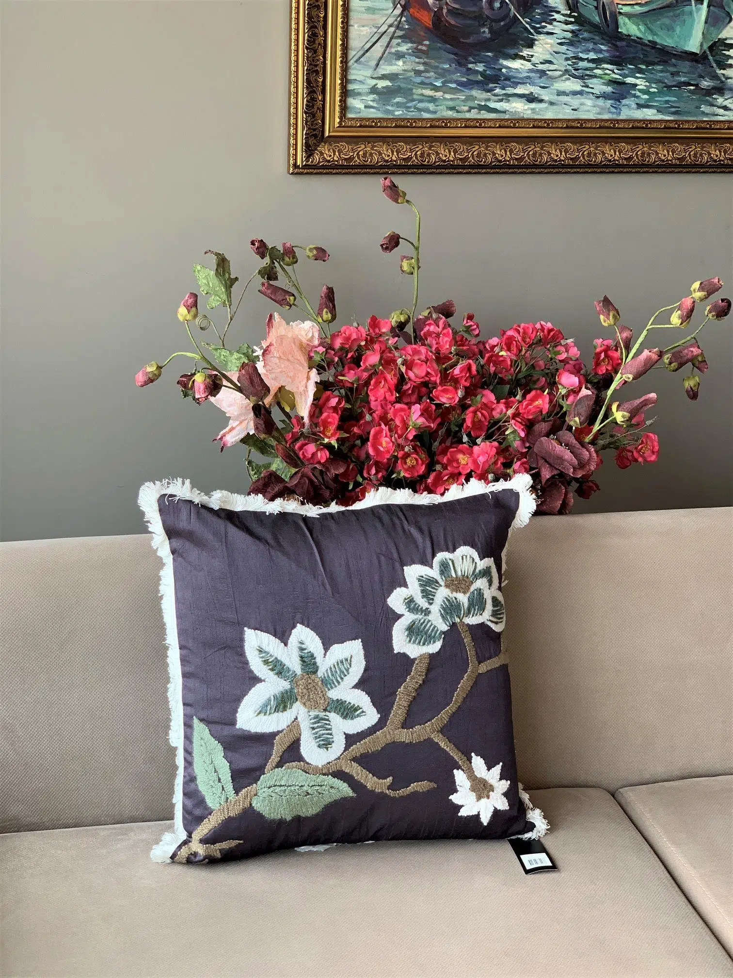 EtiketlerVZ012 Siyah Çiçek Desenli Yastık